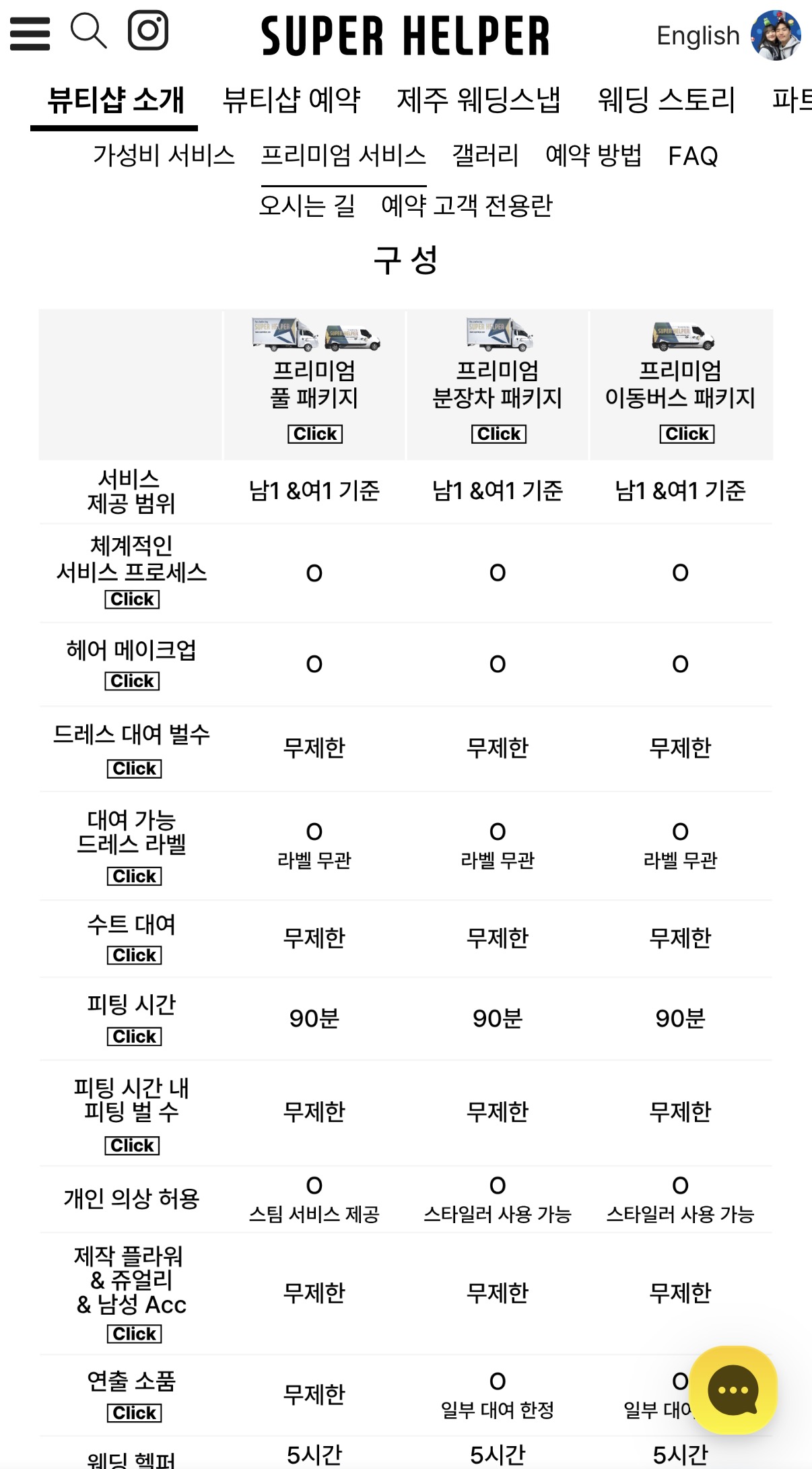 홈페이지에 패키지별로 포함된 사항들이 자세하고 꼼꼼하게 잘 나와있어서 비교해보면서 고르기 너무 좋았어요ㅎㅎㅎ