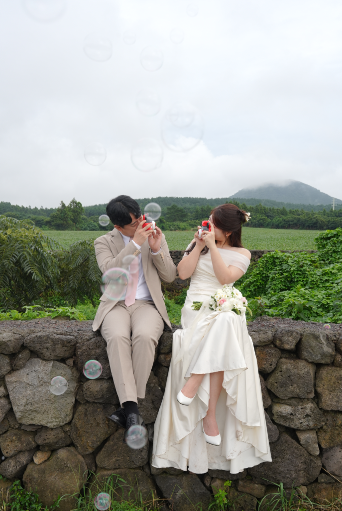 무엇보다 일상에서는 결코 얻기 어려운 ‘제주의 햇살과 색감’을 담아볼 수 있다는 이유가 컸다. 도시의 촬영과는 다르게, 제주에서는 자연광 자체가 그림이 되고, 무엇을 찍어도 화보처럼 표현된다. 그리고 그 안에서 우리가 자연스럽게 웃고 걷는 모습들이 진짜 우리의 모습으로 기록될 것 같았다. 평생 한 번뿐인 순간을 남기기 위한 장소로 제주를 선택한 건, 어쩌면 너무 당연한 선택이었다.