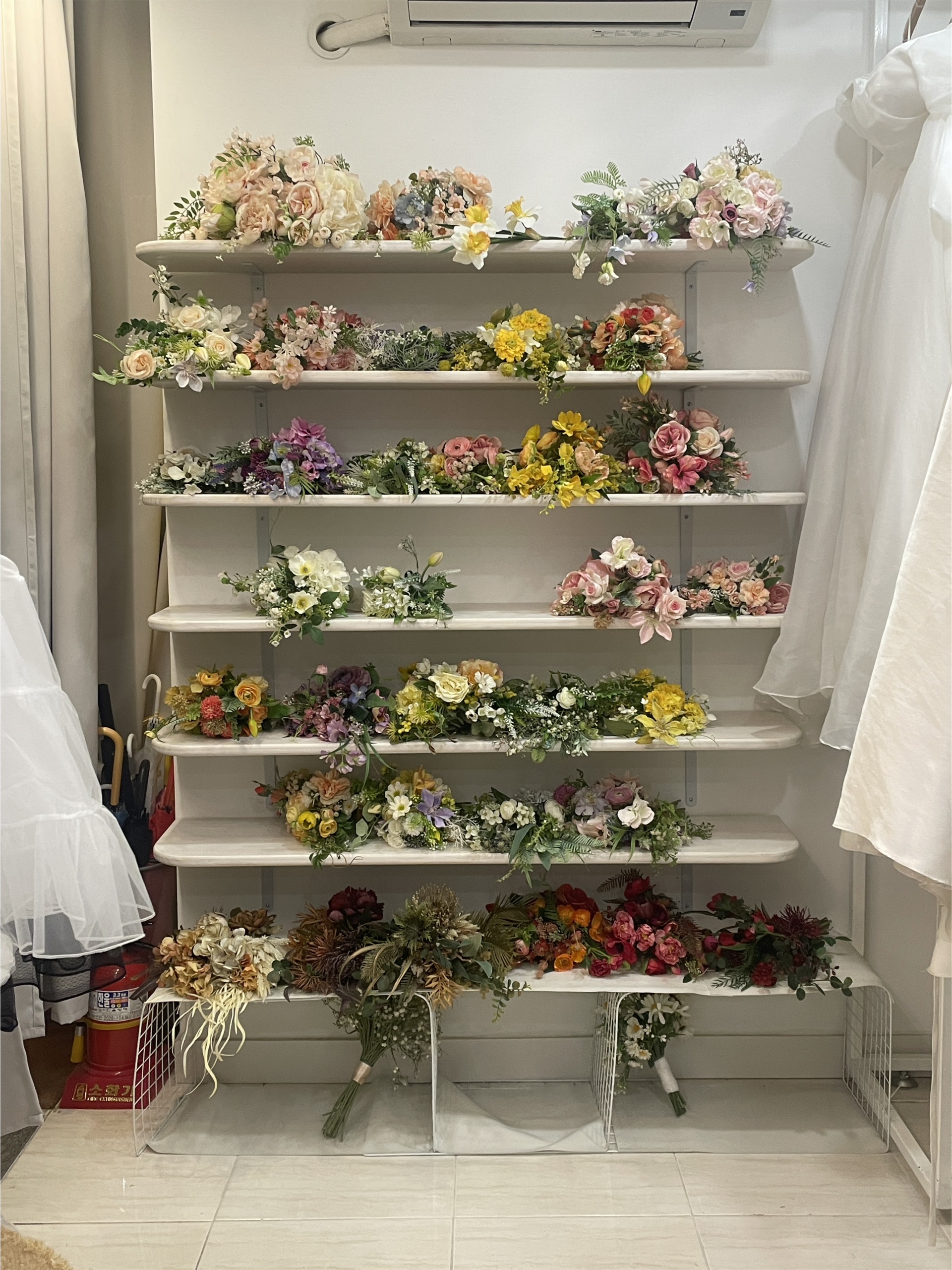 부케도 조화긴 하지만 다양하게 준비되어 있어, 컨셉과 드레스에 맞게 대여할 수 있었답니다!😆