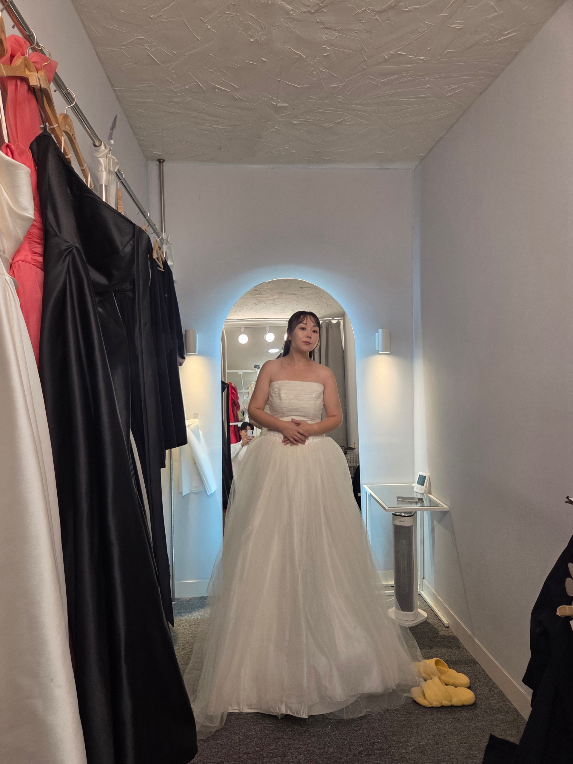흰색드레스, 유색드레스, 검정드레스 등 직접 피팅해보고 셀렉하였는데