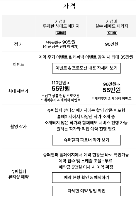 그런데 슈퍼헬퍼는 추가금 없이 무제한 드레스도 수트도 대여된다는 거죠! 완전 대박!