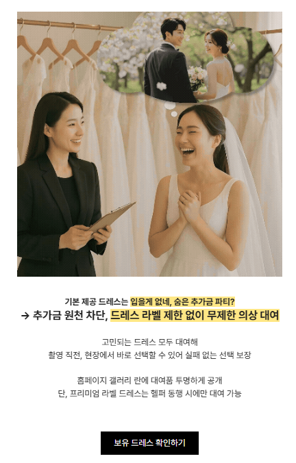 2. 추가금 없이 드레스와 수트까지 모두 무제한 의상대여!