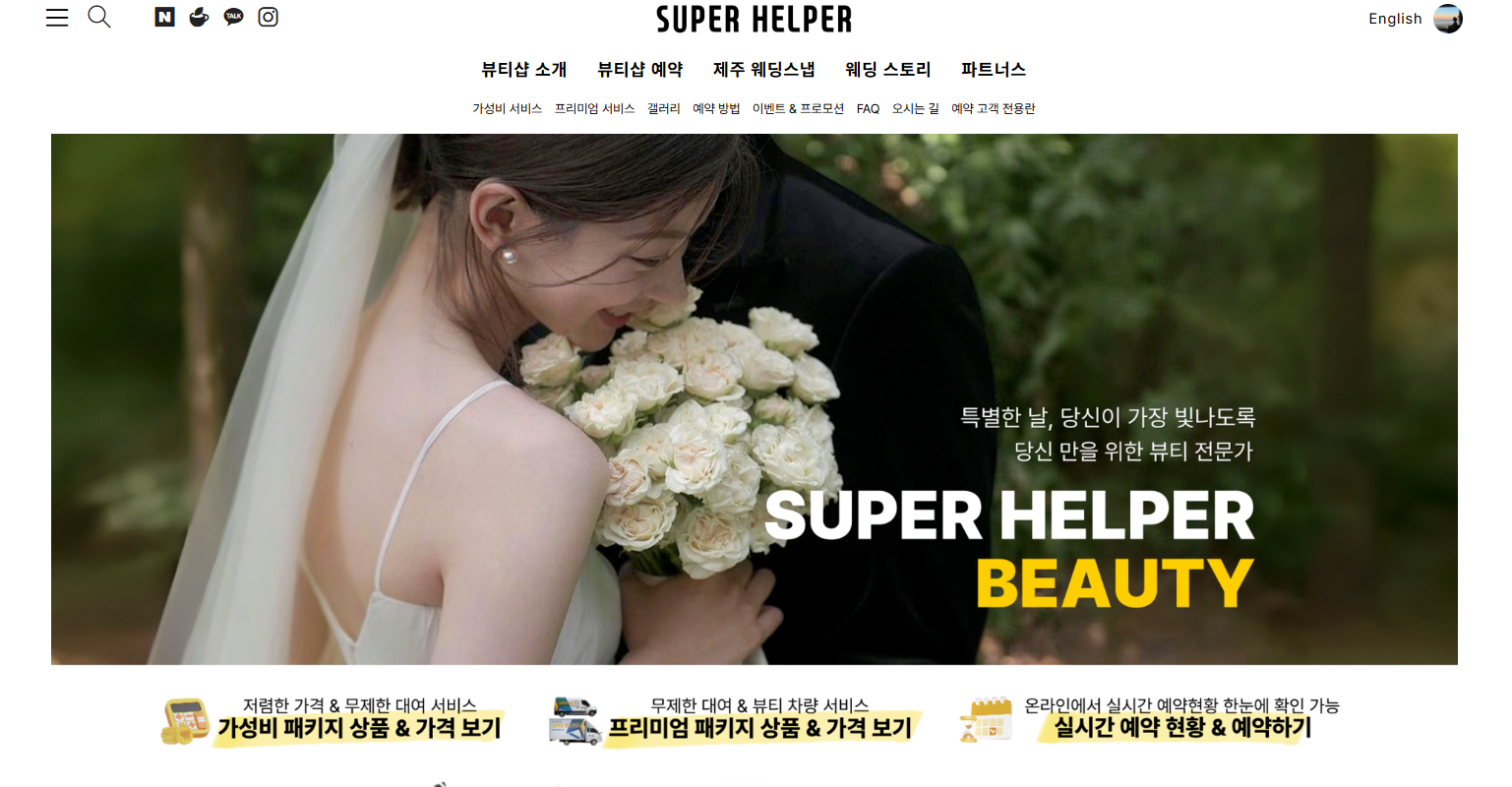 슈퍼헬퍼는 헤어, 메이크업뿐만 아니라 드레스와 소품들까지 모두 해주시더라고요.