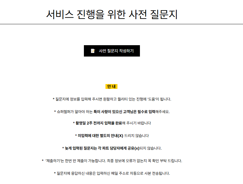 촬영 전, 내가 원하는 헤어·메이크업·드레스 스타일, 요청사항을 사전 설문지로 작성할 수 있었고,