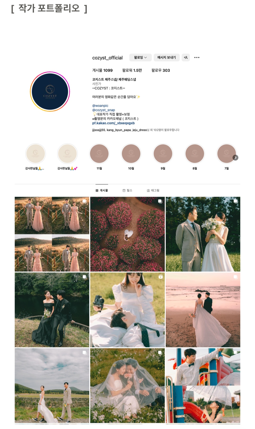 저희는 촬영작가님으로 [코지스트] 작가님을 선택했습니다!