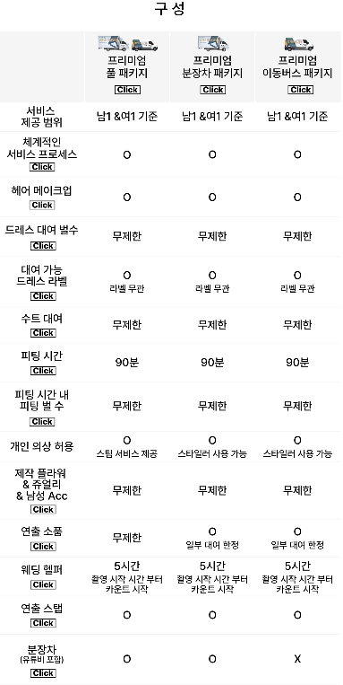 저는 프리미엄 분장차 패키지와 이동버스 패키지를 고민하다가 이동버스 패키지로 했습니다!