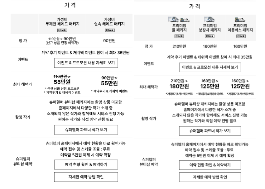 이벤트 참여하면 할인폭도 커요!금액도 가성비부터 프리미엄까지 다양해서 좋은 것 같아요 👍