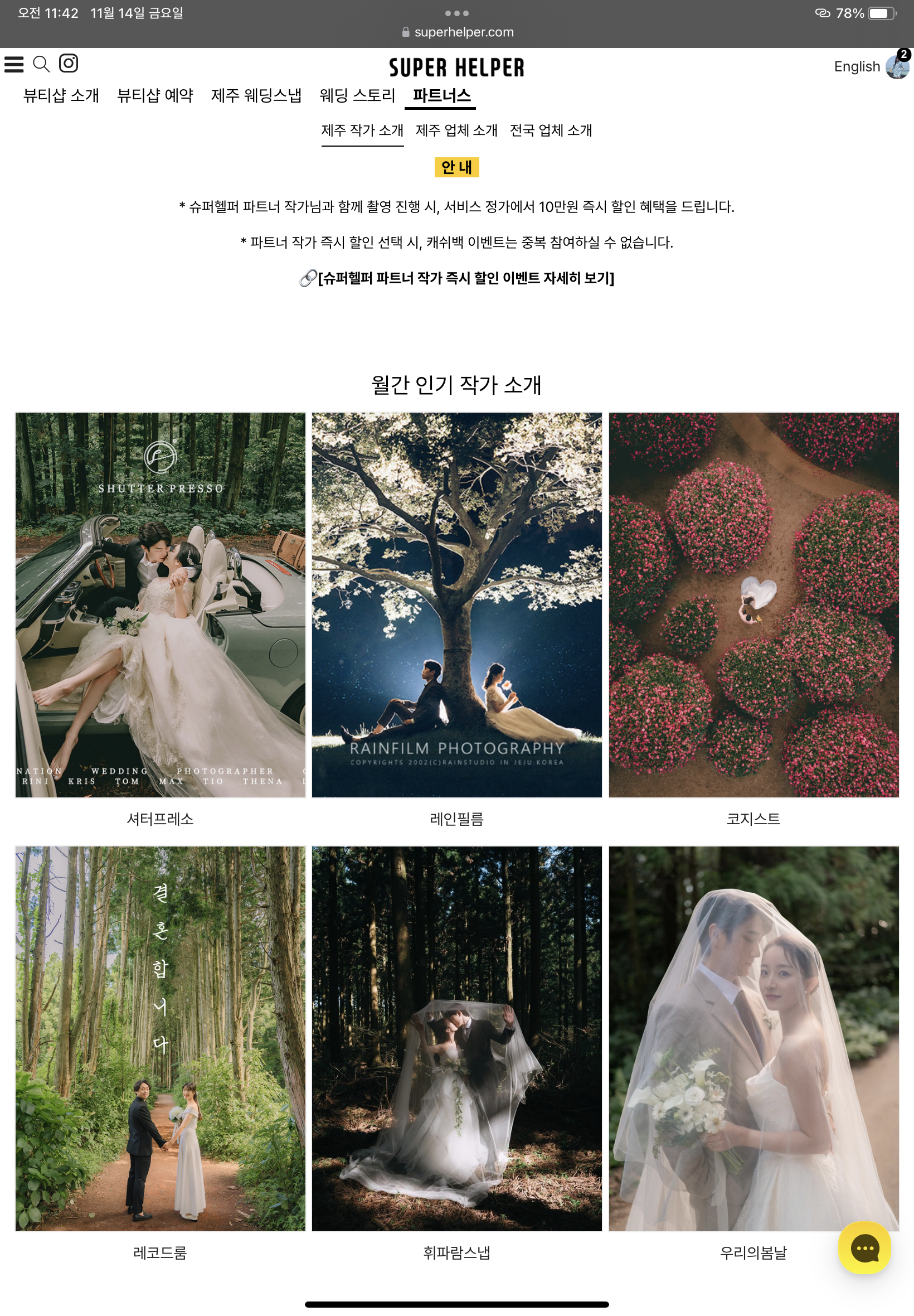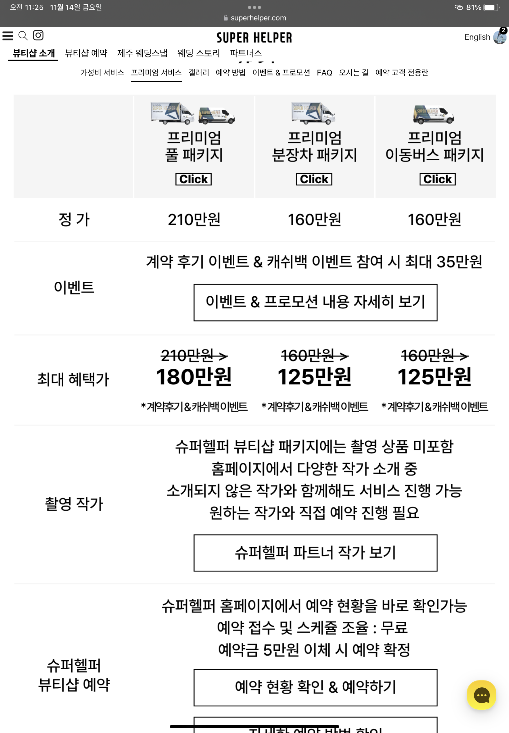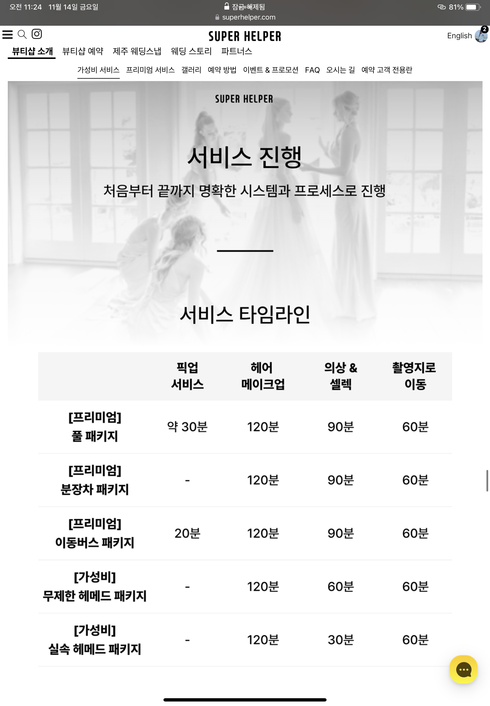 우선 슈퍼헬퍼란 제주스냅 전문 토탈 스드메 업체입니다! 가성비 패키지와 프리미엄 패키지로 나뉘어 있습니다.
