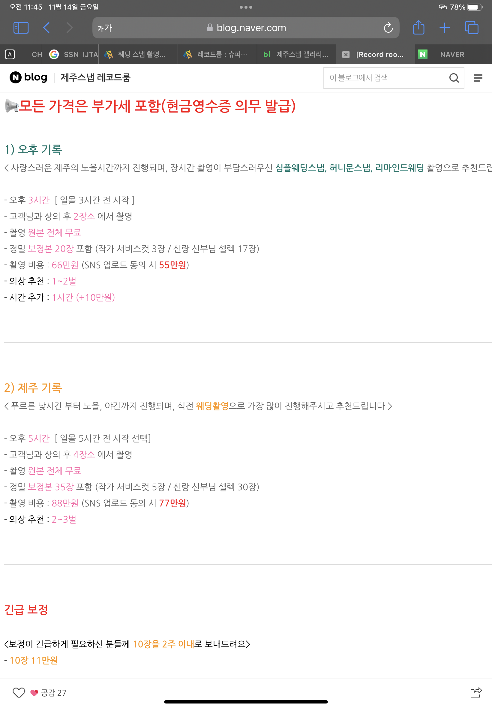 긴급 보정이 필요하시면 10장에 11만원에 가능하니까 식이 가까우신분들도 너무 걱정마세요ㅎㅎ