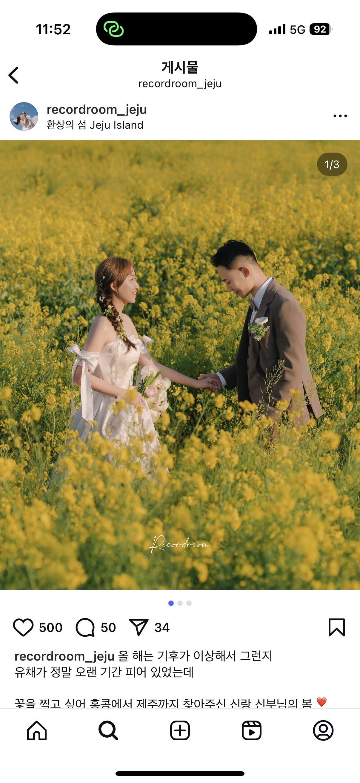 안녕하세요~ 저는 유채꽃 배경으로 제주 스냅을 찍고 싶어 4월 초에 예약을 했는데요ㅎㅎ