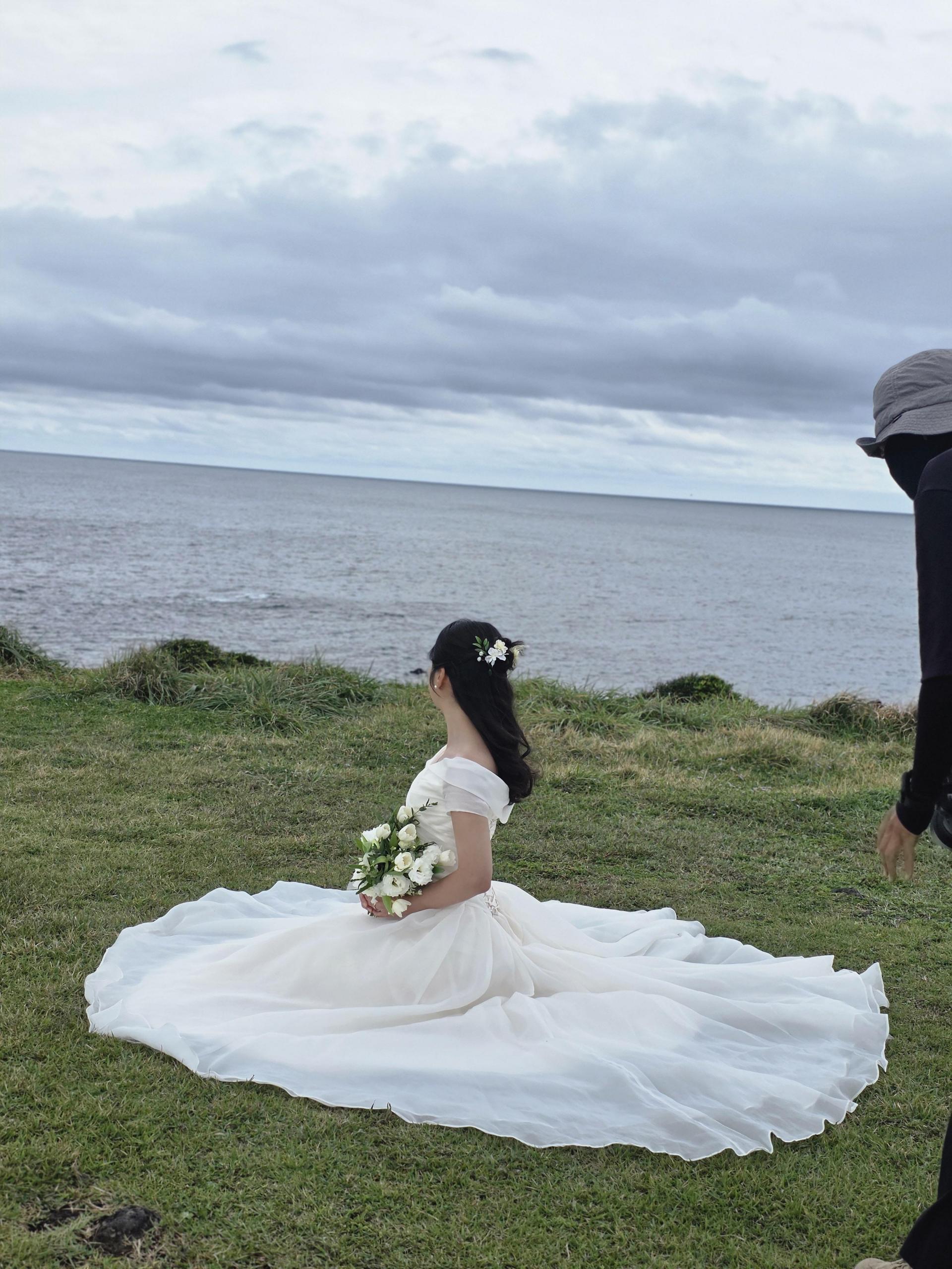 바람이 살짝 부는 날씨라 드레스가 살랑 휘날리는 모습이 이쁘게 찍히더라구요