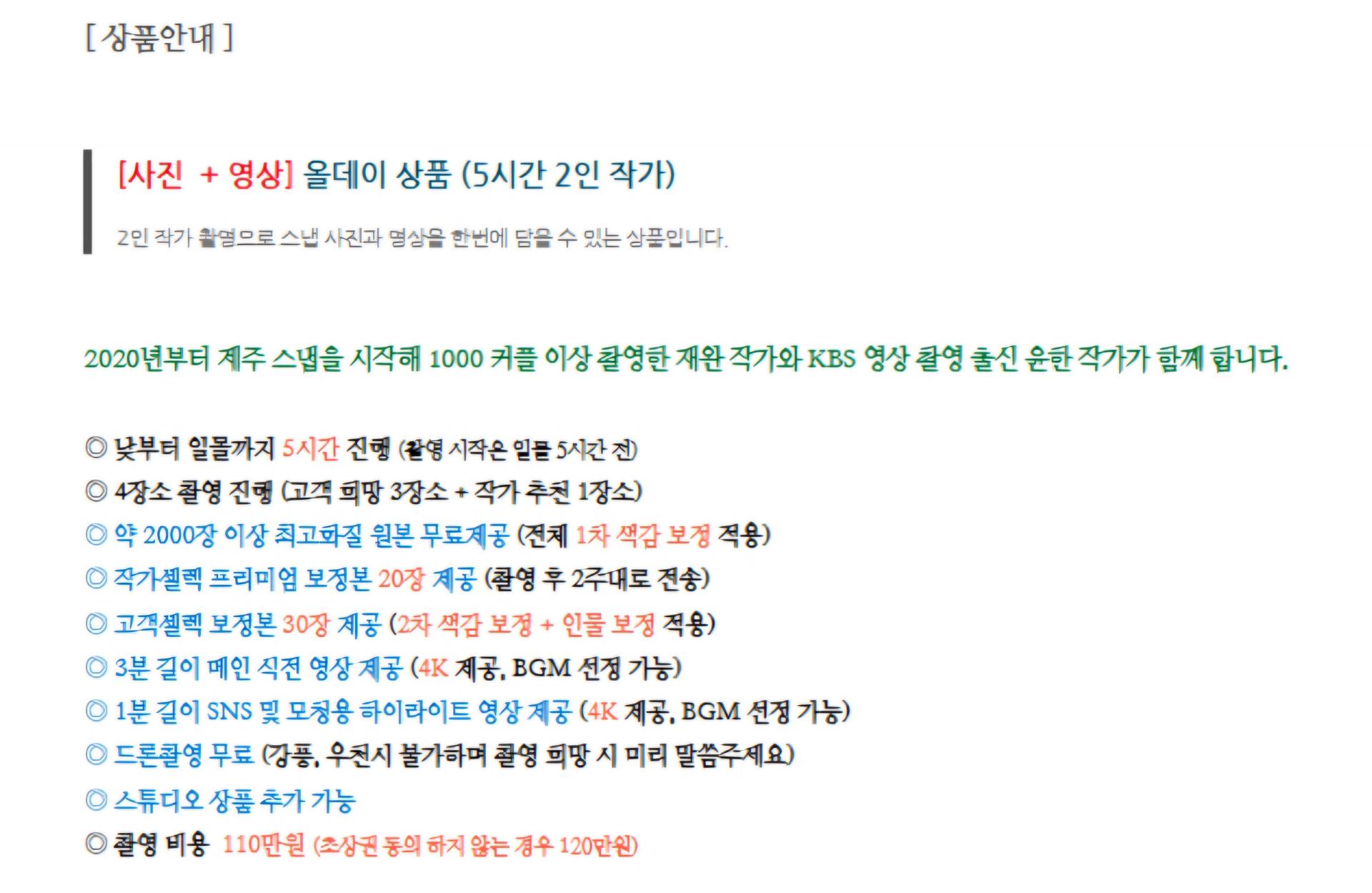 그 중에서도 저희는 사진+영상의 올데이 상품(5시간 2인 작가)을 선택했는데요!!