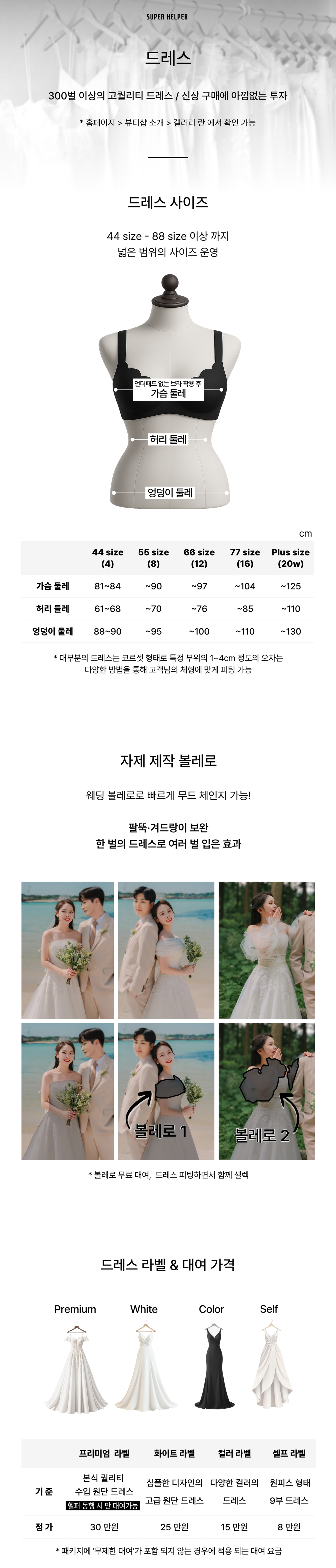 단, 프리미엄 라벨 드레스는 헬퍼 동행 시에만 대여 가능