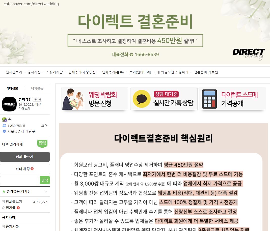 그러던 중 알게 된 게 바로 '네이버 다이렉트 웨딩카페'였어요.