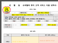 4 | 고객 서비스 내역서 | 대여품 체크를 할 때, 고객 서비스 이용내역서의 ‘고객분류’를 보고 담당 고객님이 어떤 대여품을 확정하셨는지 한번에 확인 할 수 있습니다. 보통 헬퍼 테이블 위에 있으나, 샵매니저가 피팅에 들어가면 이용 내역서를 가기에 언제나 헬퍼 테이브 위에 있진 않습니다. 이떄는 담당 고객님이 피팅 중이라는 뜻으로, 담당 헬퍼님은 잠시 피팅룸에 인사하러 갈 수있습니다. |